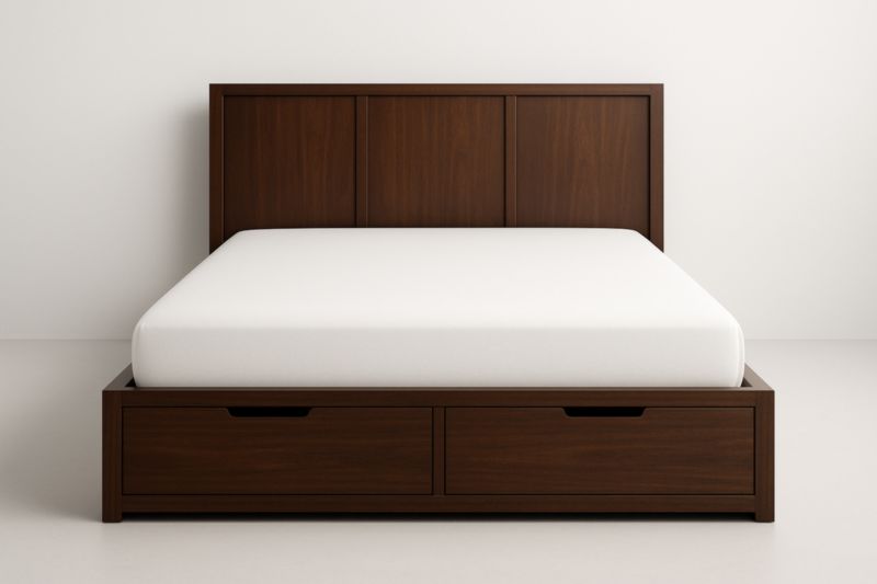 Letto matrimoniale in legno scuro con testiera imbottita e spazio ripostiglio 200x150 cm€138,96